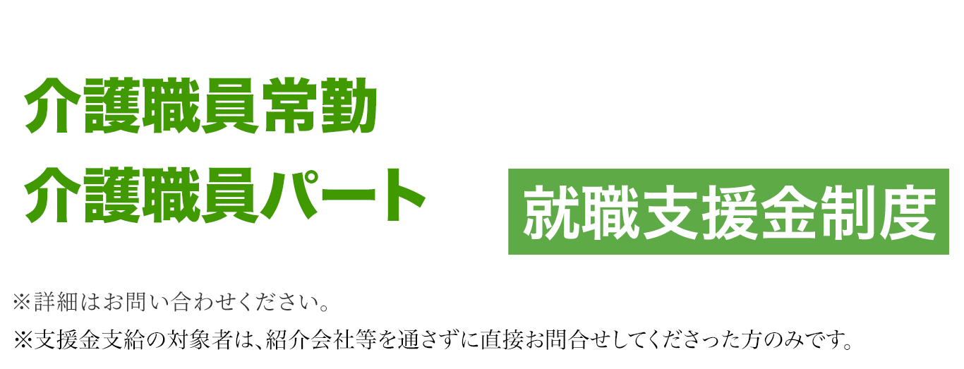 ※お問い合わせフォームから面接や施設の見学を申込み、入職された方には、就職支援金制度を適用させていただきます。